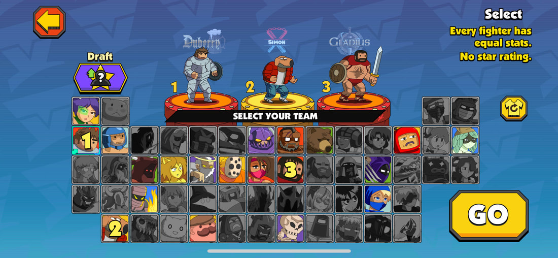 3 vs 3 'team mode' (single file). Pick your team of 3 fighters and go head to head with another player or the AI.